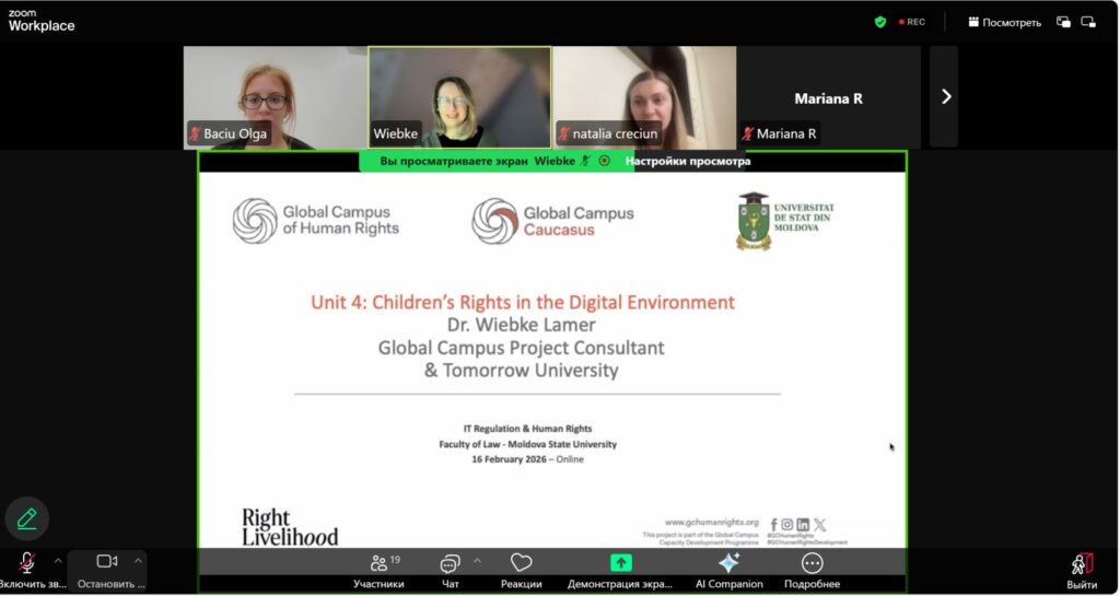 CHILDREN’S RIGHTS IN THE DIGITAL ENVIRONMENT – APPLIED LECTURE WITHIN THE MASTER’S PROGRAMME IN PUBLIC LAW (MOLDOVA STATE UNIVERSITY) & THE MASTER’S PROGRAMME IN HUMAN RIGHTS AND DEMOCRATIZATION (YEREVAN STATE UNIVERSITY)
